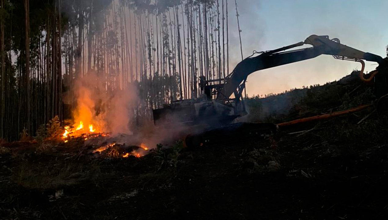 Allí, dos máquinas forestales de la empresa Trans Pacífic Fibre resultaron consumidas por las llamas, lo que requirió trabajo de personal de Bomberos y Carabineros.