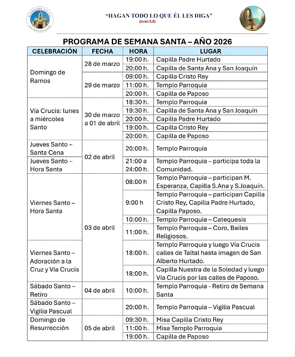 Parroquia San Francisco Javier de Taltal presenta su programa de Semana Santa 2026