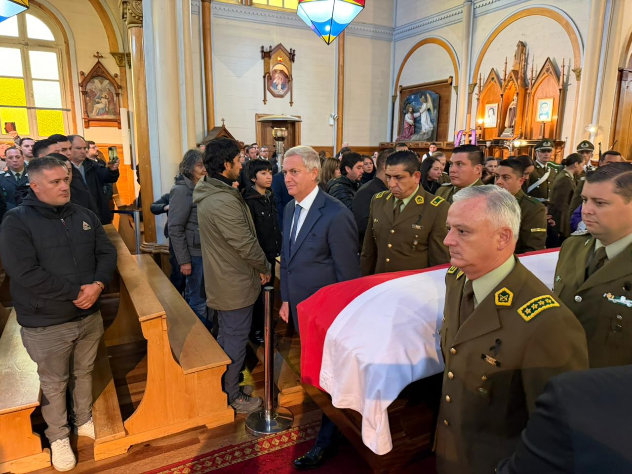 El Presidente de la República, José Antonio Kast, asistió este sábado al funeral del sargento 2° de Carabineros, Javier Figueroa Manquemilla, en Puerto Varas, quien falleció tras permanecer nueve días en estado grave luego de recibir un disparo en la cabeza durante un procedimiento policial el pasado 11 de marzo. En la ceremonia, el Mandatario reiteró el compromiso del Gobierno para esclarecer el crimen y reforzar el respaldo a la institución.